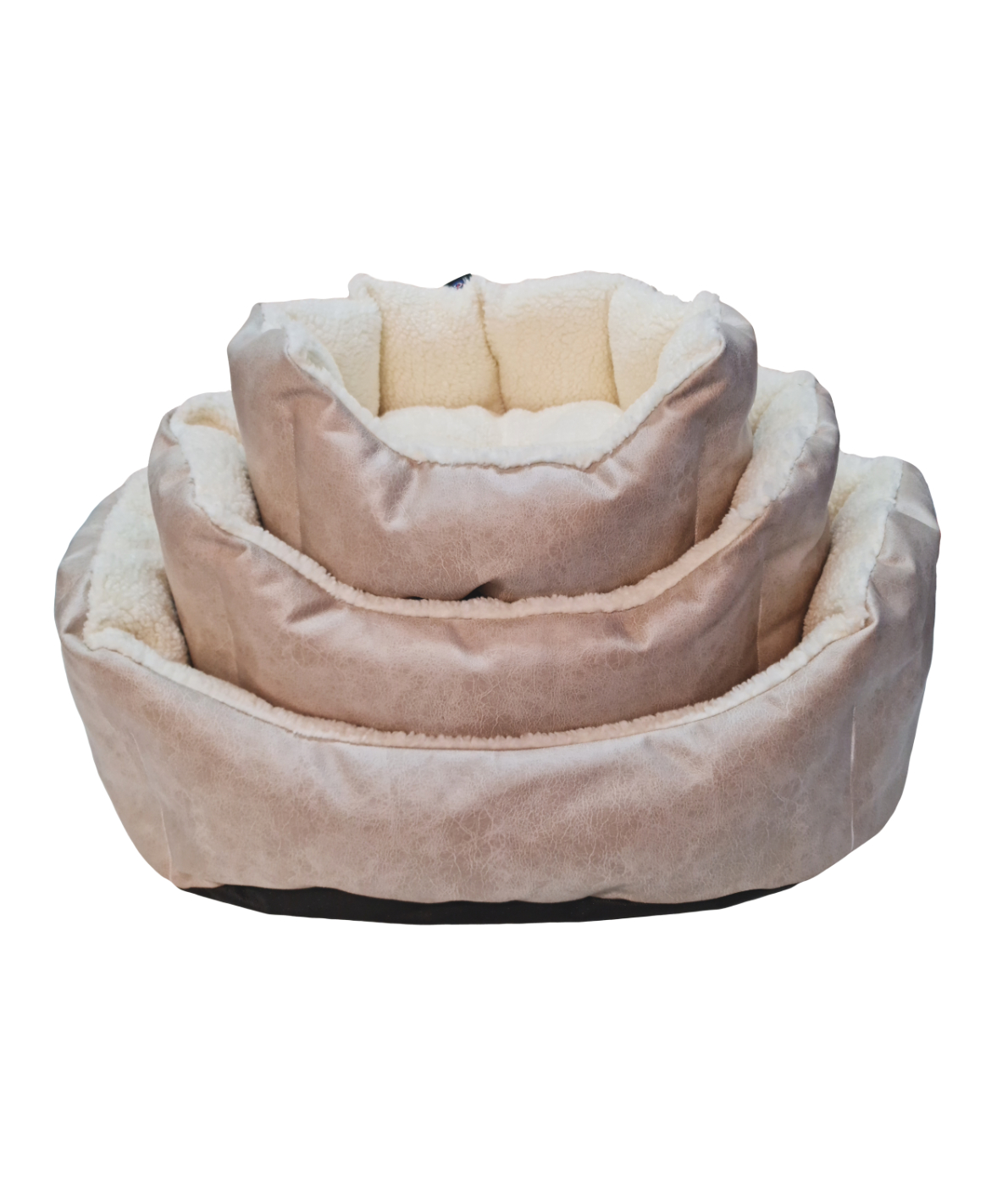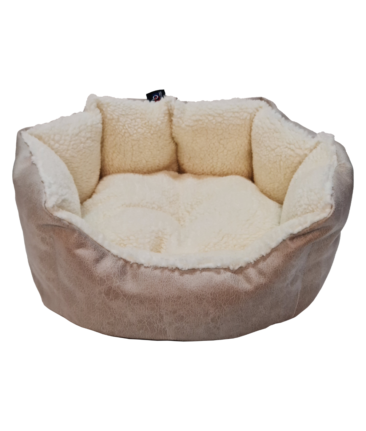 This particular bed has leatherette on the outside and a cream fleece inner.